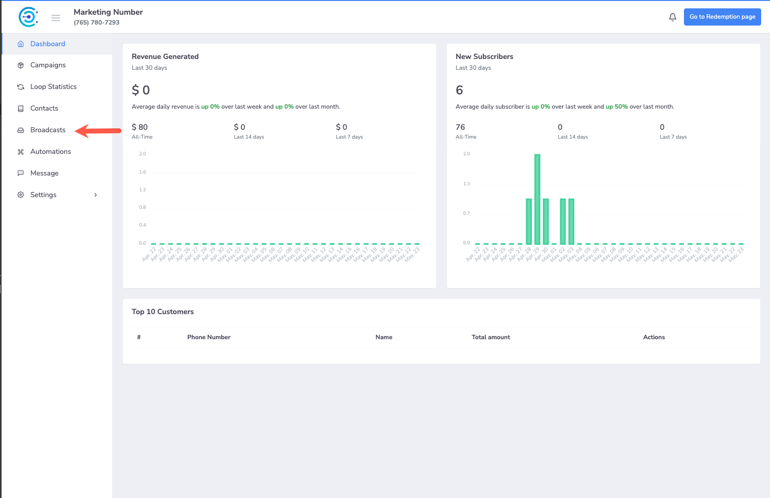 Log in to your dashboard and go to the Broadcast tab under your business workspace.